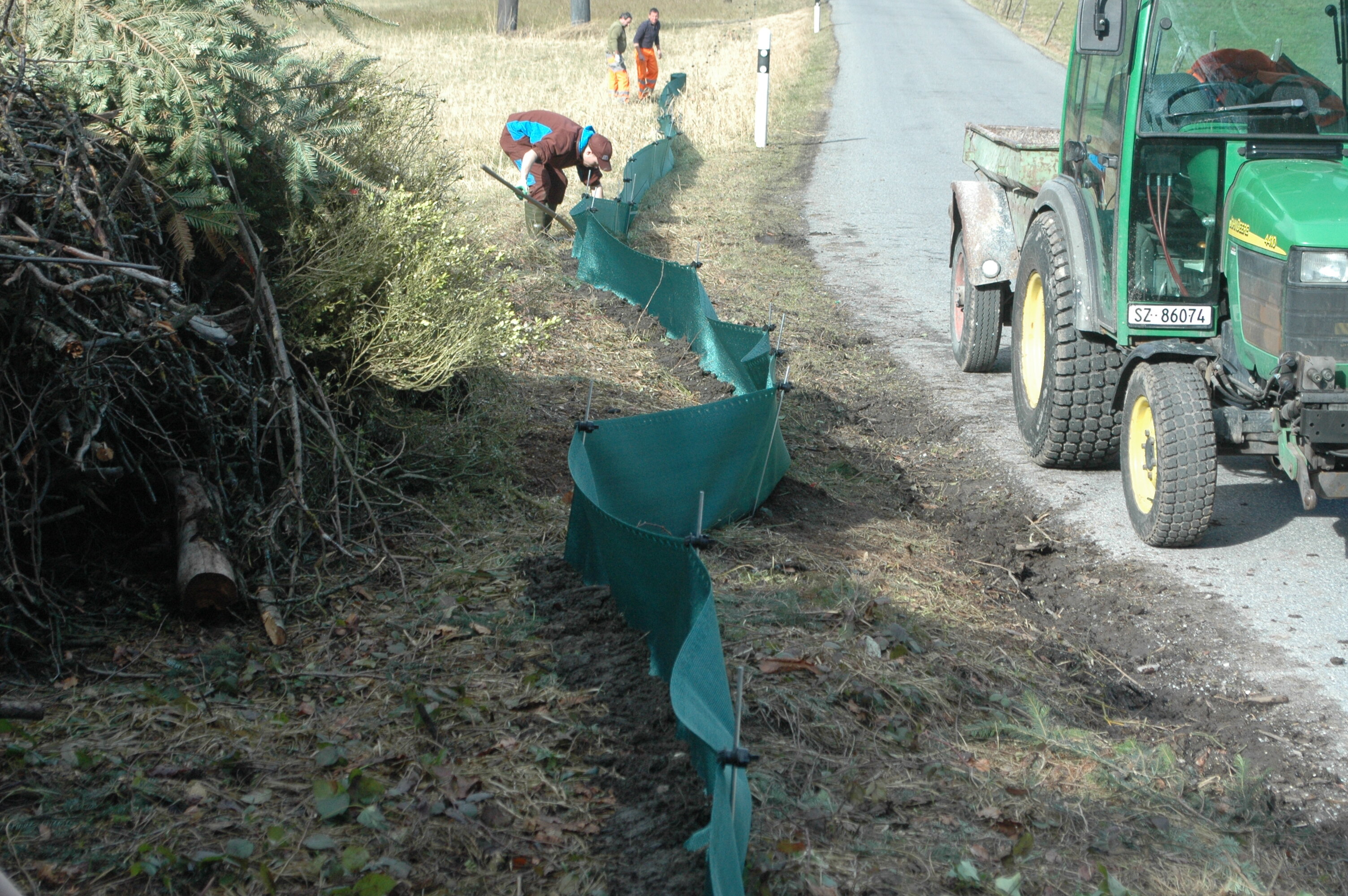 Entlang von Strassen wie der Bilstenstrasse in Altendorf, auf denen Autos Amphibien häufig überfahren, werden für die Dauer der Wanderschaft Amphibienzäune aufgestellt. Die Tiere werden eingesammelt und über die Strasse getragen. Dieses Vorgehen ist sehr zeit- und personenaufwändig.